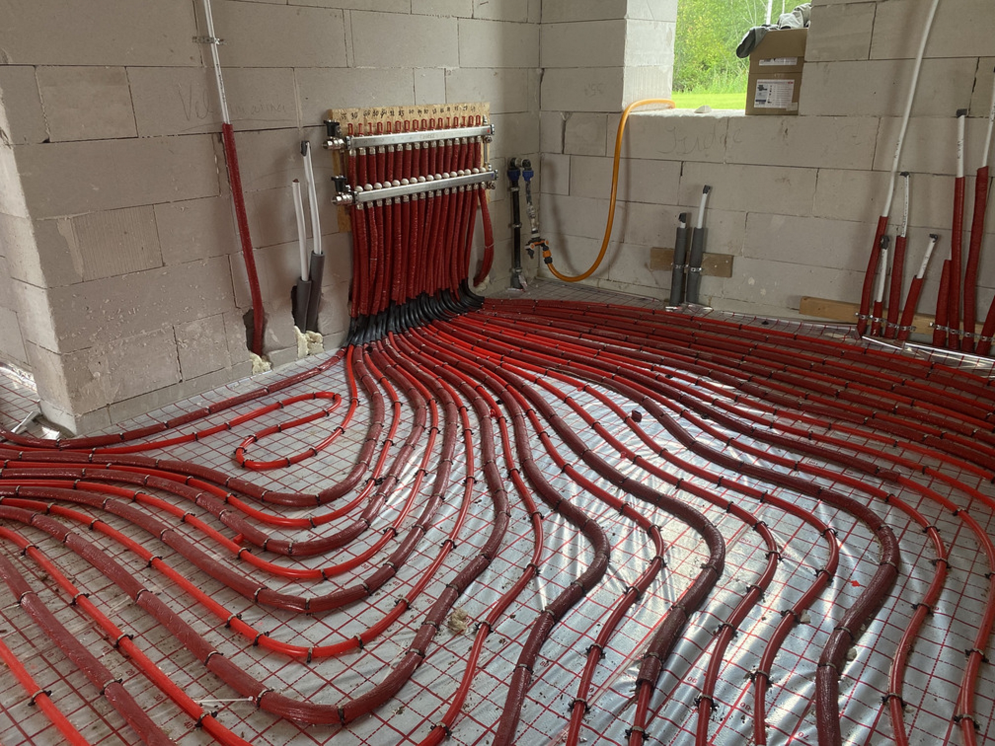 • silto grīdu cauruļu montāžu,