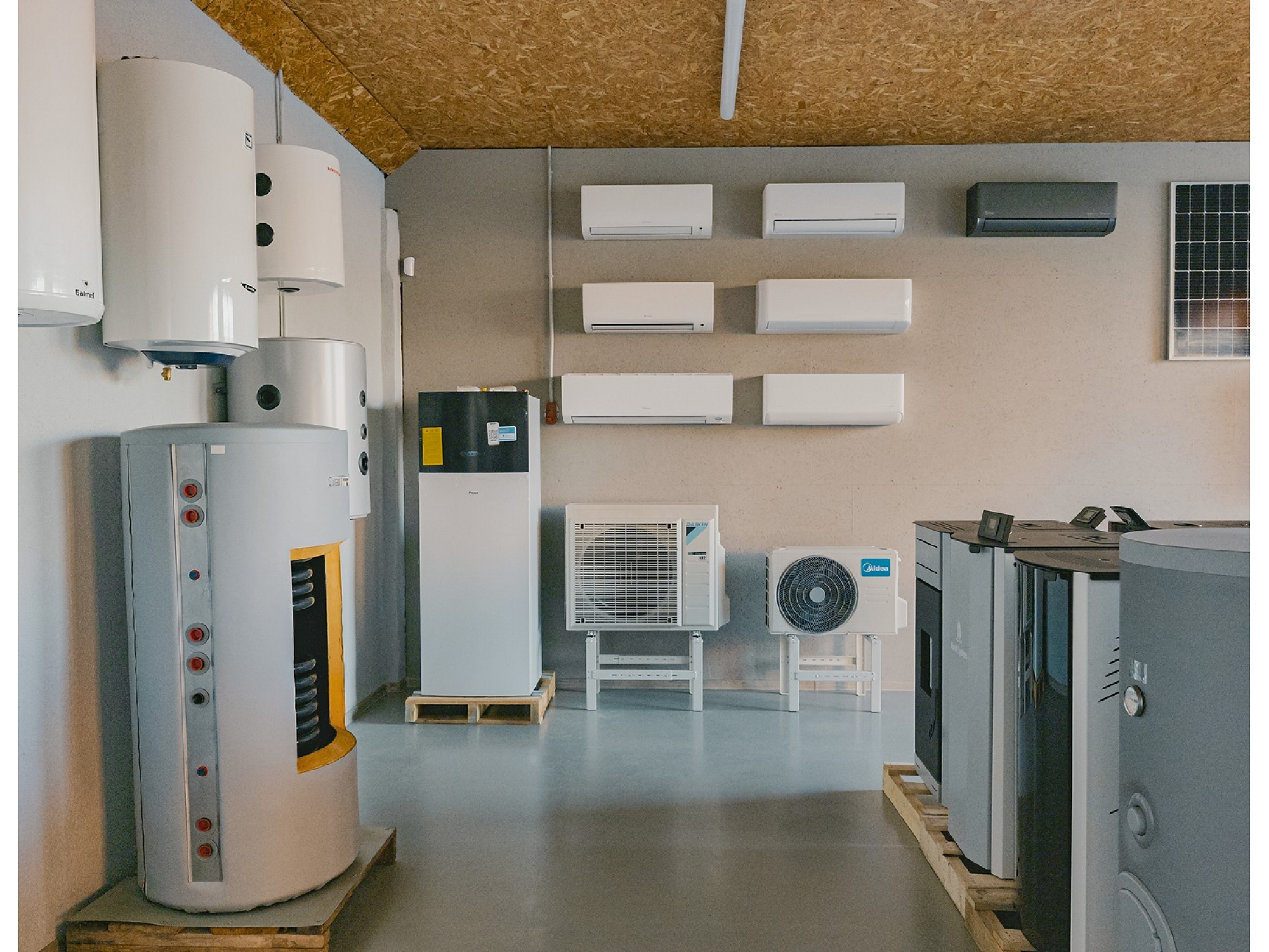 Uzstādam granulu, malkas un gāzes katlus, siltumsūkņus (gaiss–gaiss, gaiss–ūdens) un kondicionierus privātmājām un komercobjektiem. Veicam katlumāju izbūvi, apkures sistēmu modernizāciju, automatizāciju un energoefektivitātes uzlabošanu.