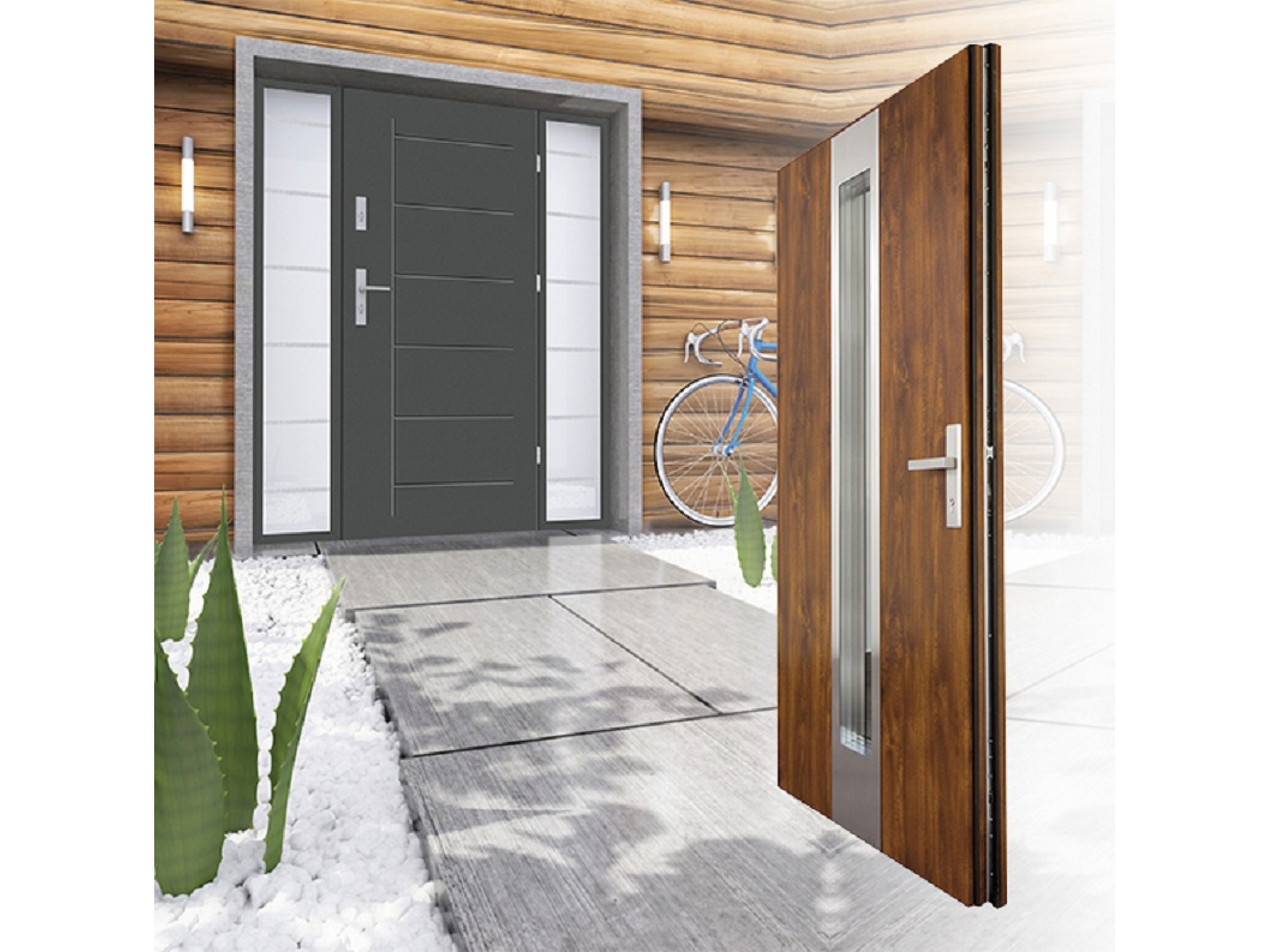 siltumnīca, pulverkrāsošana. Privātmāju, Māju ieejas durvis.