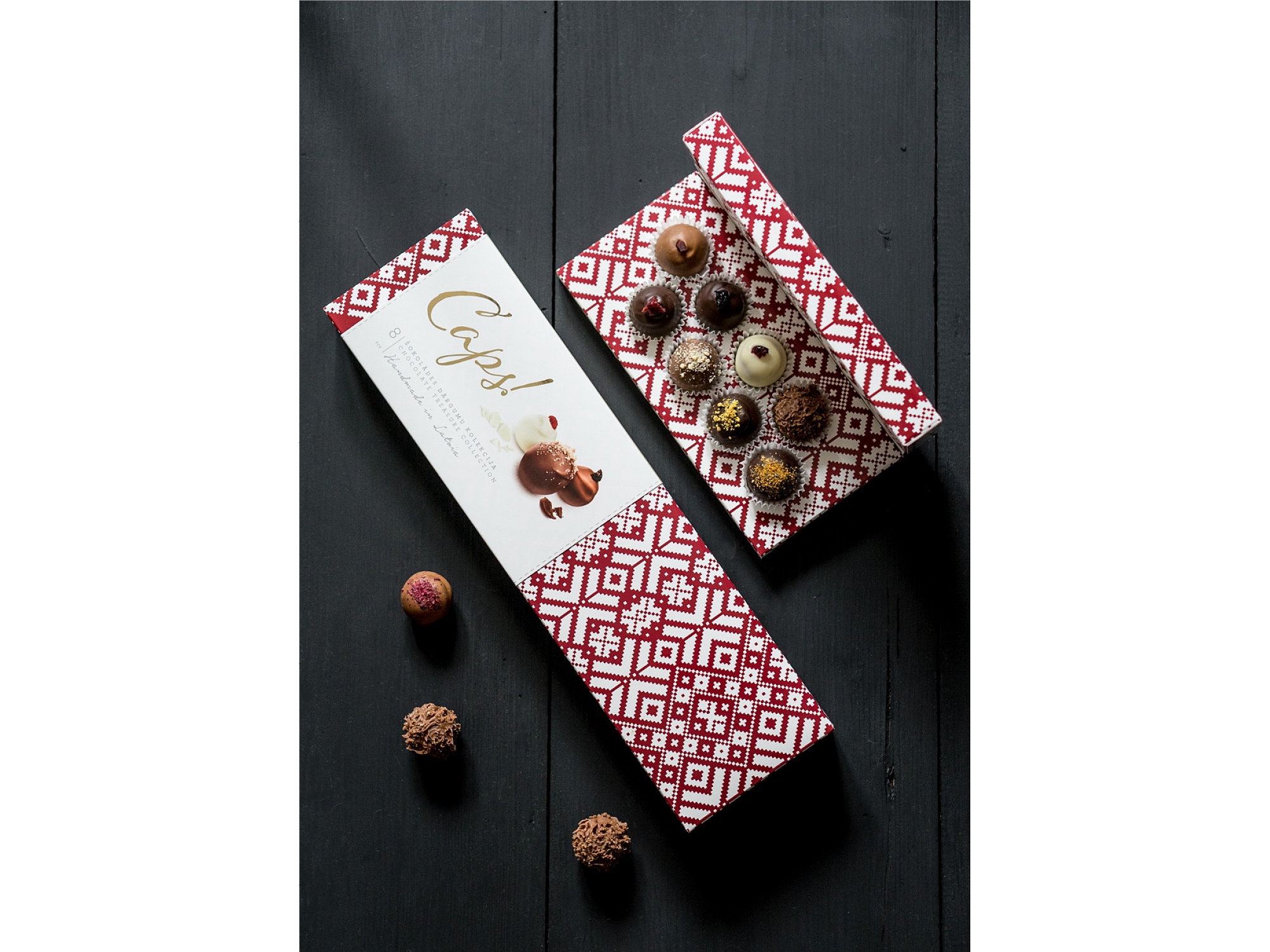 Šokolādes trifeles, beļģu šokolāde, cepumi, personalizējamas dāvanas, korporatīvās dāvanas, dabīgs produkts, luksusa šokolādes dāvanas, grezns iepakojums, meistarklases, šokolādes meistarklases, šokolādes tāfelīšu dekorēšana, trifeļu glazēšana, šokolādes māja, kafejnīca, Jaunā Teika, kāzu dāvanas, kāzu meistarklases, konditorejas izstrādājumi, kūkas, degustācija, dāvanu veikals, Kalve kafija, Piebalgas porcelāns, Plūkt tēja, Līga Nature SPA kosmētika, Laine Berina keramika, Minimelts saldējums