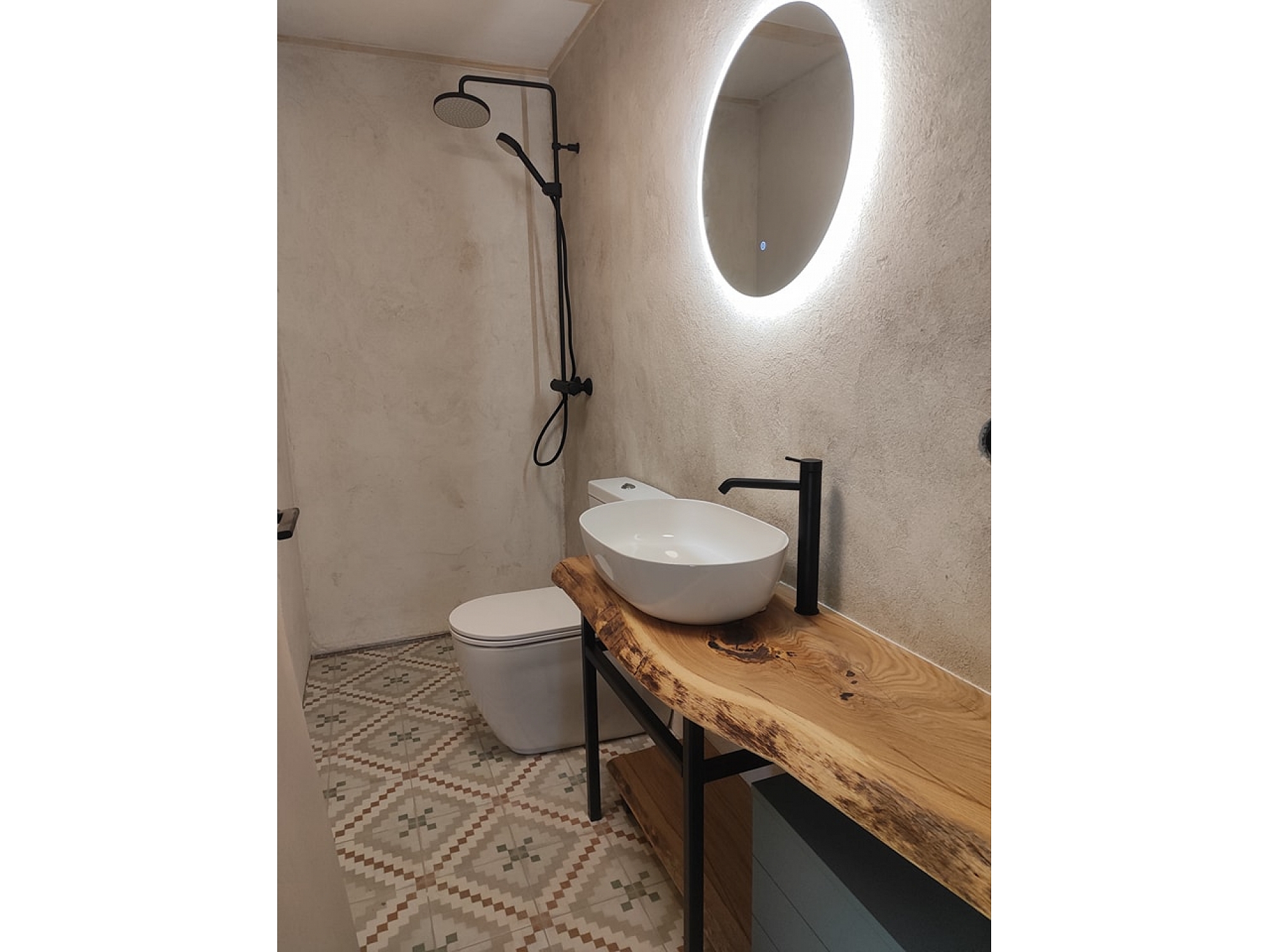 Vannas istabas interjers ar koka elementiem un dizaina izlietni