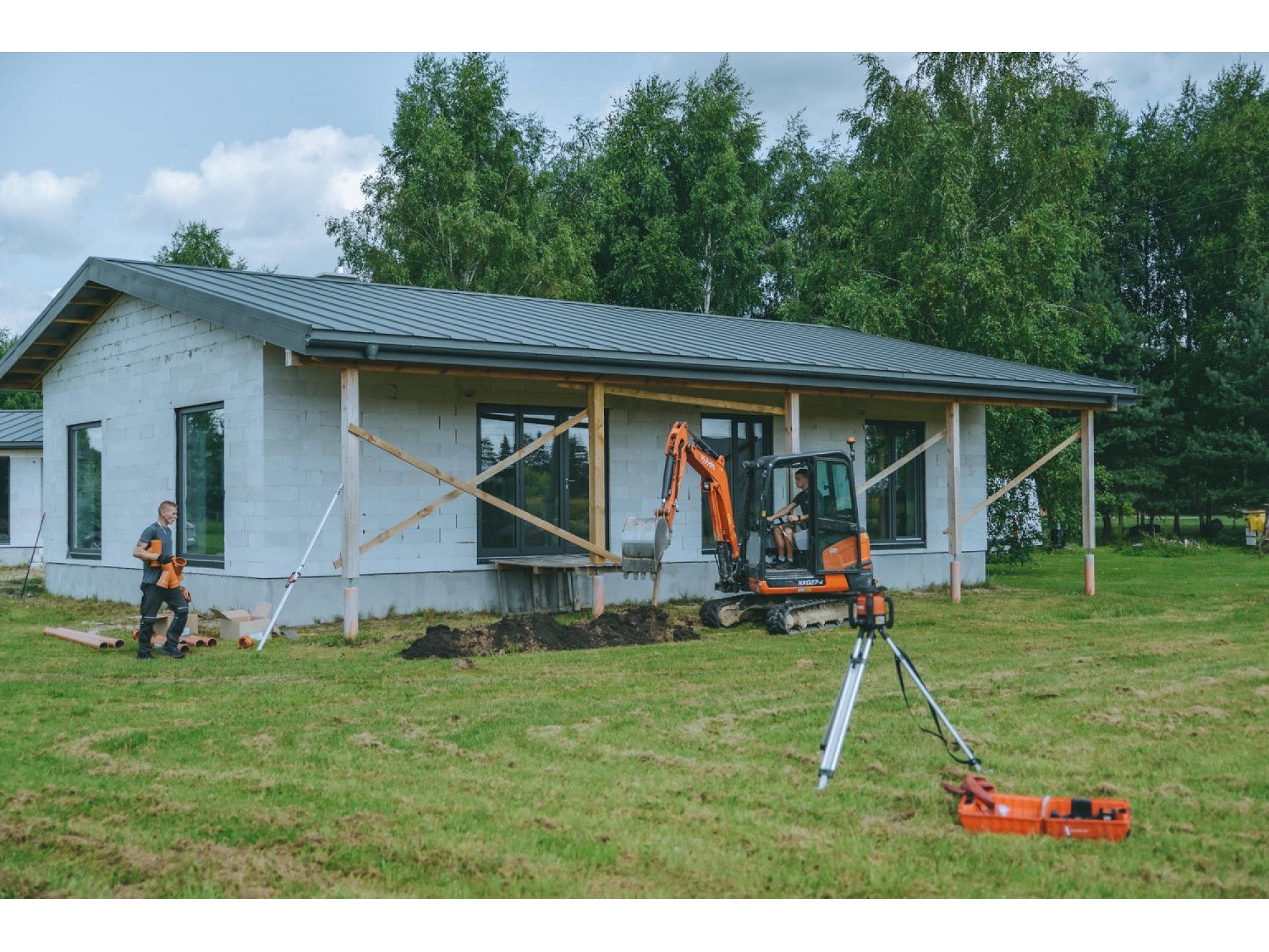 - Teritorijas labiekārtošana: zemes darbi, planēšana, iebraucamo daļu izbūve, bruģēšana.