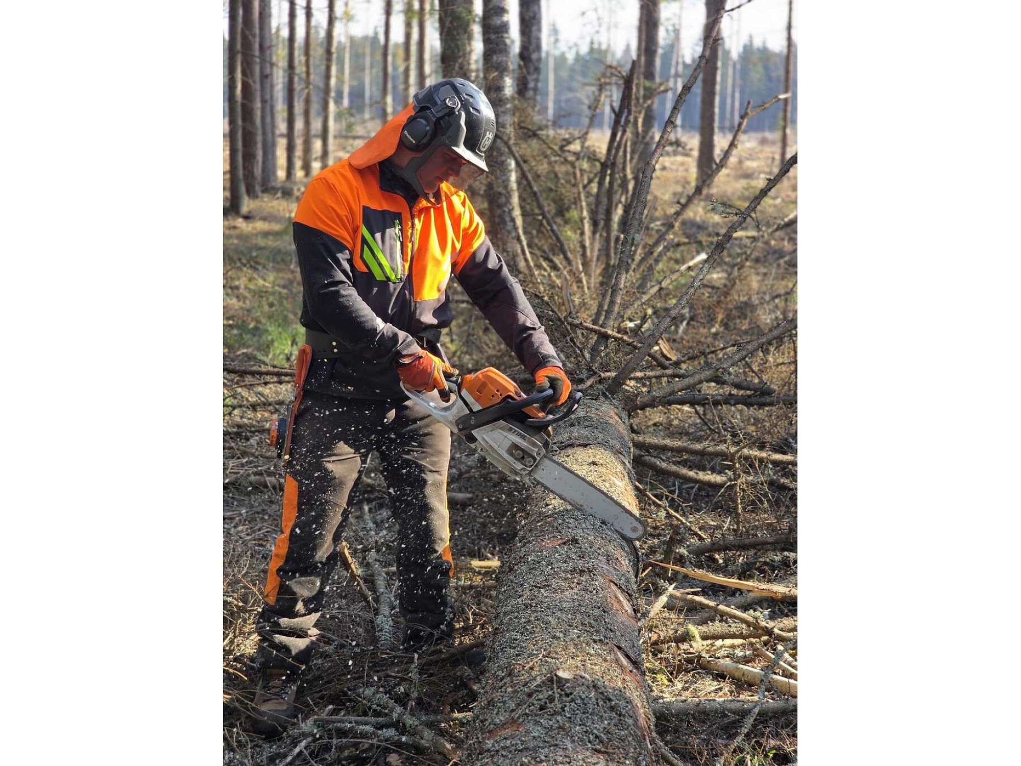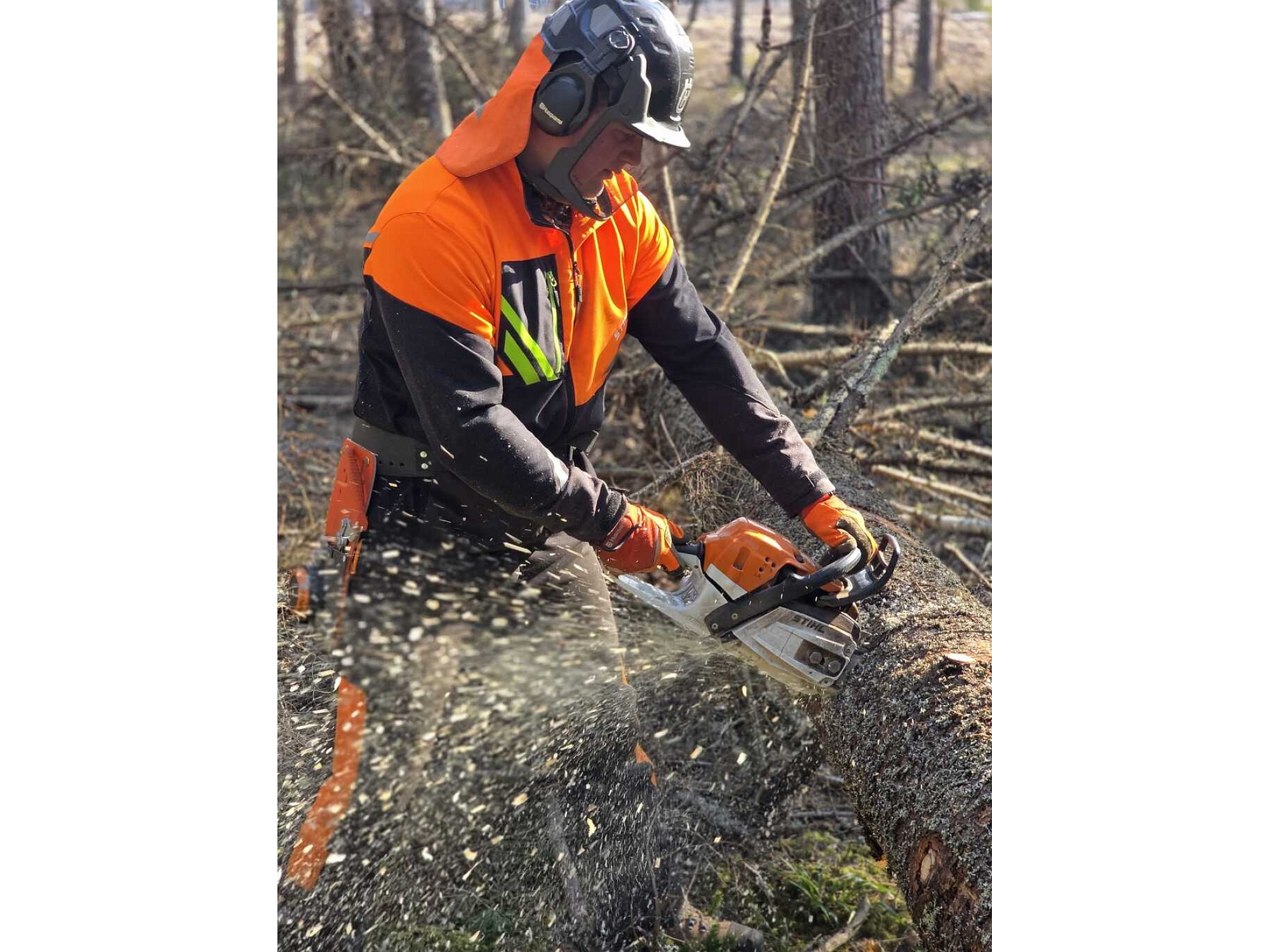 Veicam cirsmu izstrādi ar rokas motorzāģiem. Zāģēšanas darbus veic profesionāli un kvalificēti darbinieki. Pievedam kokmateriālus ar vieglās klases forvarderi ar lielāku augsnes nestspēju.