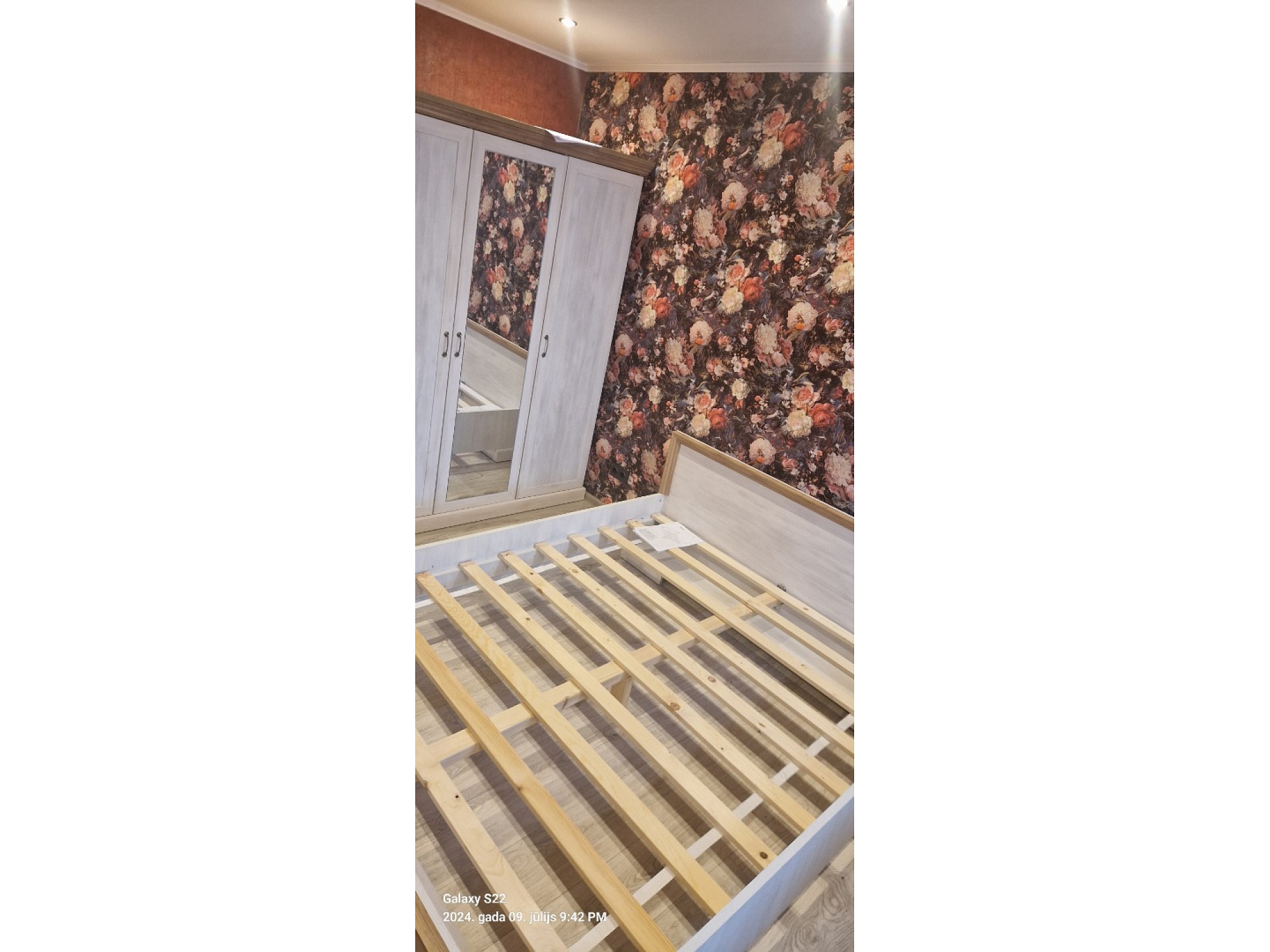 Gultas un skapja salikšana guļamistabā.