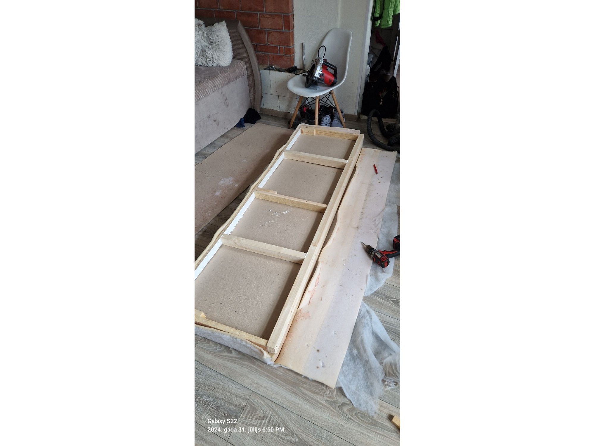 Dīvanu konstrukcijas montāža.