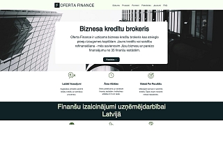 SIA "Oferta Finance" ir finansējuma brokeru uzņēmums Rīgā, kas palīdz Latvijas uzņēmumiem piesaistīt finansējumu no bankām, nebanku aizdevējiem un privātajiem investoriem. Uzņēmums darbojas kā profesionāls starpnieks, nodrošinot efektīvu un pārskatāmu finansējuma piesaistes procesu.