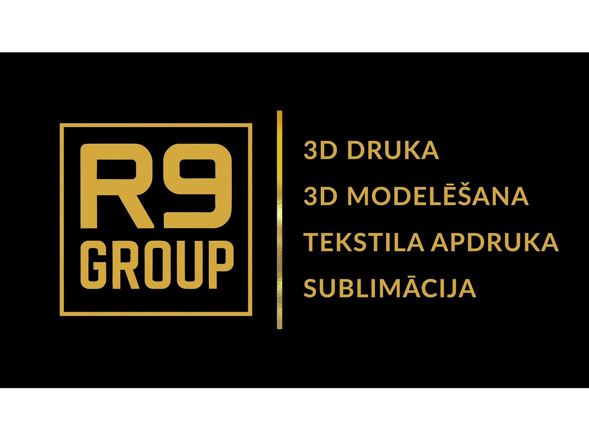 SIA "R9 GROUP" piedāvā plašu pakalpojumu klāstu, kas ietver 3D druku, 3D modelēšanu un tekstila apdruku. Mūsu pakalpojumi ir piemēroti individuāliem pasūtījumiem, dāvanām, balvām, kā arī apbalvojumu izgatavošanai sacensībām, pasākumiem un konkursiem. Piegādājam arī dāvanas un balvas pēc pasūtījuma, pielāgojot tās jūsu vajadzībām. Piedāvājam augstas kvalitātes tekstila apdruku, kas ietver T-kreklu, džemperu, cepuru, iepirkumu maisiņu apdruku, kā arī sublimāciju - termo apdruku uz termosiem, krūzītēm un šķīvīšiem. Strādājam no idejas līdz gatavam produktam, nodrošinot katra pasūtījuma unikālo dizainu un augstu kvalitāti.